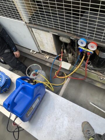 「フロン回収破壊法」に定められている特定フロン(R-11、R-12、R-113)をはじめ、代替フロン(R-22、R-123)及び、新代替フロン(R-125、R-134A、R-404C)など、空調機器で冷媒として使用されているフロン類を回収し、「フロン類破壊業者」へ引き渡して破壊処理を行います。